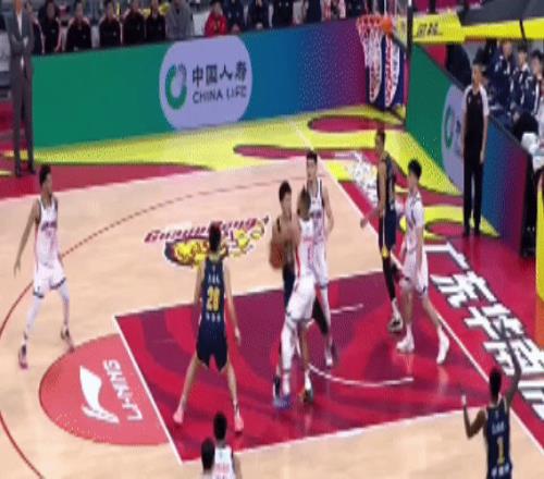 第二节:广州队发动进攻,邵炜昀三分命中。广东打阵地战,稳扎稳打。——广州4号托马斯,打出精彩进攻,一个背身运球后,送出高抛助攻,队友威金顿拿分。