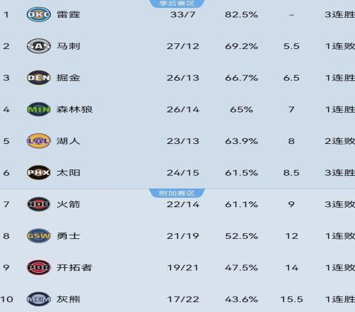 目前火箭以22胜14负排名西部第七,掉进附加赛区域,杜兰特的老东家太阳则顺势以24胜15负上升至季后赛区域。